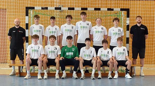 Hintere Reihe v.l. : (Trainer) Julian Pape, David Böngler, Finn Winter, Moritz Sommer, Kilian Müller, Lukas Wagner, Jakob Bittner, (Trainer) Leon Rüdesheim